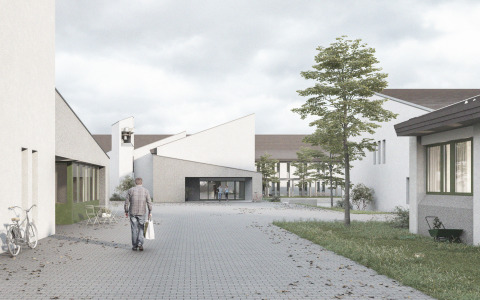 Die Anlage der Bildungsstätte Sommeri wurde 1974 durch den Frauenfelder Architekten Josef Räschle erstellt. Eindrücklich sind die ruhige Atmosphäre und die architektonische Geschlossenheit der Bauten und Freiräume. Den Benutzern bietet der Ort eine hohe Wohnqualität und ein offenes, aber dennoch geschütztes Umfeld. Die Anlage ist aber auch in die Jahre gekommen. Sie zeigt bauliche Mängel und muss saniert werden. Auch die betrieblichen Voraussetzungen entsprechen nicht mehr den heutigen Anforderungen. Es werden zusätzliche behindertengerechte Nasszellen erstellt. Balkone und Terrassen müssen grosszügiger gestaltet werden. Das Wohnangebot wird um eine zusätzliche Wohngruppe für demente Bewohner erweitert. Die architektonischen Eingriffe konzentrieren sich auf wenige ergänzende Gebäudeteile in abgesäuertem Sichtbeton: neuer Empfang, Vorfahrt mit gedeckter Wartezone und Verbindungsgang zum Wohnhaus, Balkonerweiterungen, Carport. Die heute rötlichen Bestandesbauten erhalten mit einem hellgrauen Anstrich eine frischere, zeitgemässe Ausstrahlung.