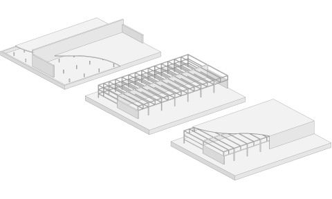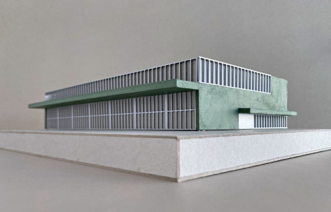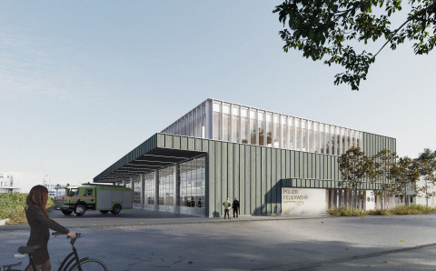 Die knappen Platzverhältnisse auf dem Grundstück an der Motorenstrasse in Wetzikon bedingen eine Zusammenlegung der beiden unabhängigen Betriebe zu einem neuen Feuerwehr- und Polizeizentrum. Dies erlaubt die gemeinschaftliche Nutzung von zentralen Räumen wie zum Beispiel die dreigeschossige Eingangshalle. Diese funktioniert als betriebliches Gelenk und ermöglicht einen räumlich überraschenden Auftakt im sonst wirtschaftlich organisierten Gebäude. Der schlichte Baukörper weist eine effiziente Konstruktion auf. Die innere Tragstruktur ist aus Beton gefertigt, die Dach- und Fassadenflächen aus Holzbauelementen. Da die Geschossdecken dank Verbundträgern über fünfzehn Meter gespannt werden, kann das Gebäude flexibel genutzt werden. Um die Fassaden des schlichten Volumens zu gliedern, werden die Fenster zu sorgfältig ausformulierten Bändern zusammengefasst. Es entsteht eine dynamische, um die Gebäudeecken laufende Fassadenkomposition. Diese widerspiegelt die Wachsamkeit und die Einsatzbereitschaft der beiden Nutzer. Vor allem von der Motorenstrasse aus ist dem Gebäude die spannungsvolle, athletische Erscheinung abzulesen, die durch das Ineinandergreifen von Vordächern und Fassadenflächen entsteht.