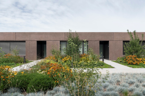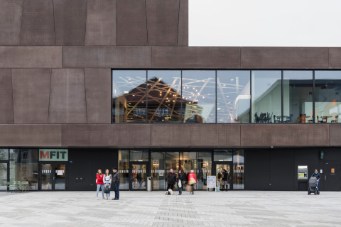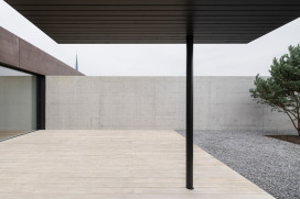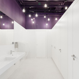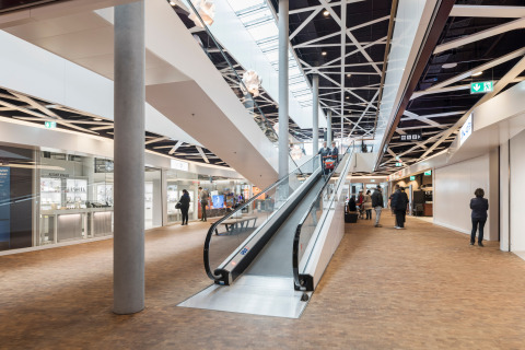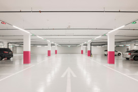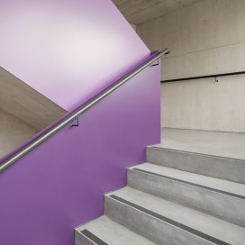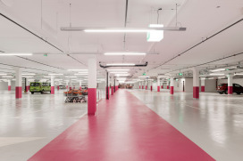 Trotz des engen Spielraums durch das knappe Baufeld und das umfangreiche Raumprogramm fügt sich das neue Einkaufszentrum der Migros Genossenschaft Ostschweiz auf selbstverständliche Weise in den städtischen Kontext von Amriswil ein. Besonders die volumetrische Ausgestaltung des Attikageschosses hilft, den grossen Baukörper in differenzierte Bereiche zu gliedern. Die zwei zur Kirchstrasse parallel gesetzten Volumen betonen den Strassenzug und bringen durch ihre versetzte Anordnung ein Gleichgewicht in die Anlage. Die Gliederung der Funktionen ist übersichtlich und effizient. Zwei Untergeschosse bieten Platz für 250 Parkplätze sowie für Lager- und Technikräume. Das Erdgeschoss und das Obergeschoss weisen 9‘000 m² Verkaufsfläche auf. Das Attikageschoss erweitert das Angebot mit einem Fitnesscenter, Wohnungen und einer Arztpraxis. Das Herzstück des Gebäudes ist die zweiseitig erschlossene Shoppingmall mit dem grosszügigen, lang gestreckten Oblicht. Als Reaktion auf die prominente, städtische Lage ist die Fassade mit grossformatigen Betonelementen hochwertig, aber zurückhaltend materialisiert. Wenige, versetzt angeordnete Fensterbänder geben dem Gebäude eine dynamische, die Horizontale betonende Ausgestaltung.