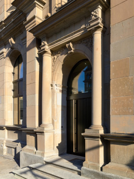 Die 1896-99 erbaute Hauptpost Winterthur ist ein bedeutendes Baudenkmal des Historismus. Trotz zahlloser Um- und Anbauten sind die äusseren Veränderungen begrenzt, innen hingegen ist nur noch sehr wenig Originalsubstanz erhalten. Nach der Auslagerung des Paket- und Briefzentrums stehen seit 2003 bedeutende Flächen leer, andere sind durch grosse Telefonzentralen belegt. Dies ist Anlass für ein Wettbewerbsverfahren, aus dem das vorliegende Projekt hervorgeht. Der 1995 erstellte Hofanbau, der den gesamten früheren Posthof belegt, wird abgebrochen. Das Innere des Baublocks ist jetzt durchgehend erlebbar und profitiert vom schönen Garten des benachbarten Volkarthauses. Eine neue radiale Raumschicht umschliesst direkt unter der Traufkante einen mehrgeschossigen Lichthof – die Schalterhalle der in den Anbau verlegten Poststelle. Der Rhythmus der Lochfenster des Anbaus und die in den unteren Geschossen durch neue Betonpfeiler ergänzte Tuffsteinfassade des Altbaus werden zum Kennzeichen der neuen Hauptpost. Die vertikal strukturierte bronzefarbene Metallfassade des Anbaus schafft in Farbe und Tektonik den Bezug zur mächtigen Sandsteinfassade des Altbaus.