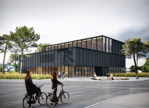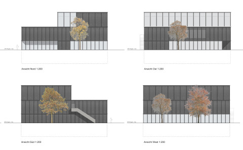 Das Bildungszentrum für Technik in Frauenfeld hat angrenzend an ein Wohnquartier eine dreieckige Parzelle erworben, auf der zwei Sporthallen mit Erweiterungs- möglichkeit realisiert werden sollen. Das Hochbauamt des Kantons Thurgau hat dazu einen offenen Projektwettbewerb ausgeschrieben, an dem 73 Architekturbüros teilgenommen haben. Um möglichst wirtschaftlich mit der Grundstücksfläche umzugehen, sind die zwei Turnhallen übereinander angeordnet. Zusammen mit einer straff organisierten Nebenraumschicht entsteht ein kompakter Baukörper, der einer späteren Erweiterung viel Spielraum verschafft und attraktive Aussenflächen ermöglicht. Der Allwetterplatz ist in Grünflächen eingebunden und weist zu den Wohnhäusern einen schützenden Abstand auf. Die in Felder gegliederte Holzfassade gibt dem Gebäude einen filigranen Ausdruck, der seiner an ein Wohnquartier angrenzenden Lage gerecht wird. Gleichzeitig kommen dadurch der vorfabrizierte Holzelementbau und der modulare, architektonische Aufbau zum Ausdruck.
