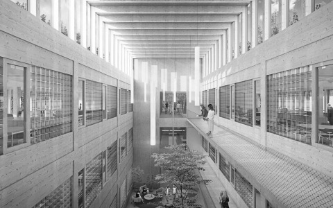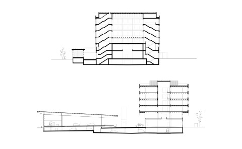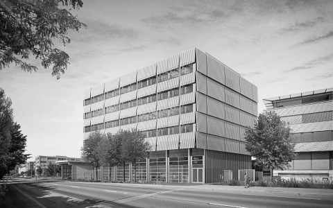 Das Projekt schlägt eine einfache und klare Struktur vor, die sich harmonisch in den industriellen Kontext des Ortes einfügt. Das langgestreckte Grundstück grenzt auf der einen Seite an die Industriestrasse und auf der gegenüberliegenden Seite an den Erlenring. Gegliedert ist es in zwei differenzierte Teile mit unterschiedlichen Zufahrten. Auch volumetrisch werden die beiden Hauptnutzungen des Programms durch den Werkhof- und Manövrierplatz in der Mitte getrennt. Die einfache Geometrie der beiden Hauptbauten geben dem stark befahrenen Grundstück und der volumetrisch sehr heterogenen Umgebung eine beruhigende Selbstverständlichkeit. Eine Pergola grenzt das Areal gegenüber dem Park ab und schafft den Übergang zur begrünten Aussenanlage. Die Wettbewerbsjury überzeugte diese ortsbauliche und betriebliche Einfachheit und Stringenz. Mit der entflochtenen Verkehrsführung der beiden Betriebe werden viele potenzielle Konflikte bereits im Wettbewerbsprojekt konzeptuell gelöst. Die geordneten Geometrien und beherrschten Konstruktionen schaffen einen rational geprägten gestalterischen Ausdruck und ein architektonisch fein gegliedertes Bild. Das Nebeneinander von Massivbau im Sockel und Holzbau im darüberliegenden Bereich wirkt selbstverständlich und harmonisch. Die Modularität zahlreicher Elemente schafft gute Voraussetzungen für eine nachhaltige Bauweise.