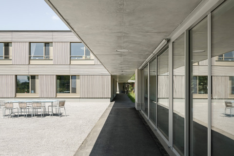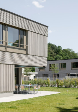Das heilpädagogische Schul- und Therapiezentrum Ilgenhalde in Fehraltorf bietet Kindern und Jugendlichen mit geistiger und mehrfacher Behinderung eine optimale Förderung und Betreuung. Das Zentrum enthält Schul- und Therapieräume sowie fünf Wohngruppen und eine zusätzliche therapeutische Wohnschulgruppe. Das Areal liegt, umgeben von Landwirtschaft, ausserhalb von Fehraltorf. Das Zentrum wurde in den Siebzigerjahren als zusammenhängende Gesamtanlage erbaut. Vor ein paar Jahren wurde der Schultrakt durch ein frei stehendes Schulhaus ersetzt. Die Ersatzneubauten für die Wohngruppen verfolgen diesen städtebaulichen Ansatz weiter und ersetzen die zusammenhängenden Wohnbauten durch drei kompakte, frei stehende Baukörper. Die Gebäude sind nebeneinander leicht versetzt auf der markanten Geländekanzel angeordnet und durch einen überdachten Aussenweg mit dem bestehenden Wirtschaftstrakt verbunden. Gegen Süden entstand so ein durchlaufender, begrünter Aussenraum mit Sicht auf die Alpen. Jedes Gebäude enthält zwei unabhängige, zweigeschossige Partnerwohngruppen mit einem gemeinsamen Bettenaufzug. In der östlichen Wohngruppe ist die therapeutische Wohnschulgruppe mit zwei internen Schulzimmern untergebracht.